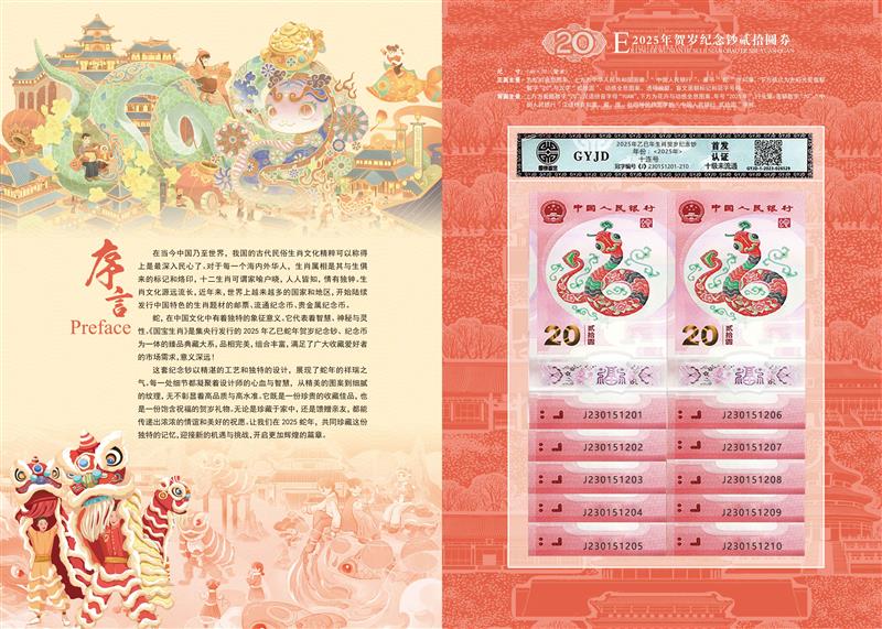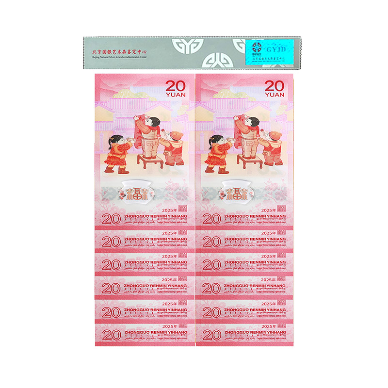 主品:2025年生肖贺岁蛇钞首发认证*10枚,尾号从1-2-3-4-5-6-7-8-9-0,每枚面值20元,共计200元面值