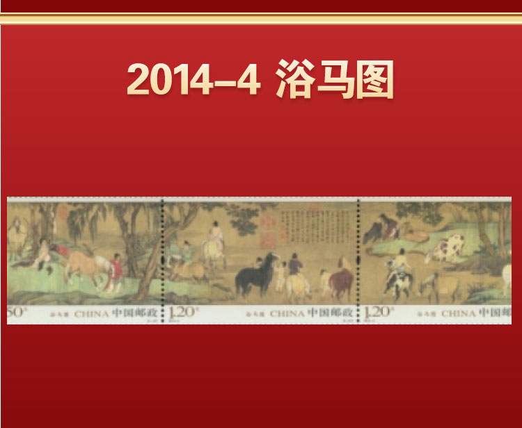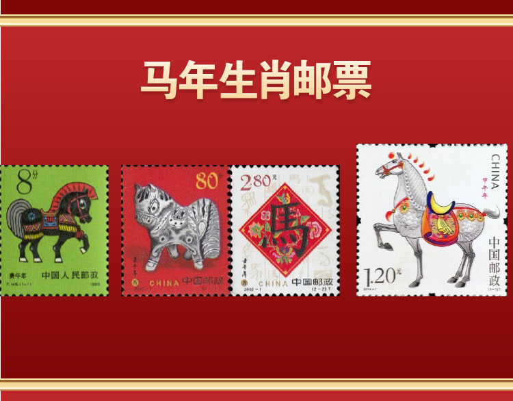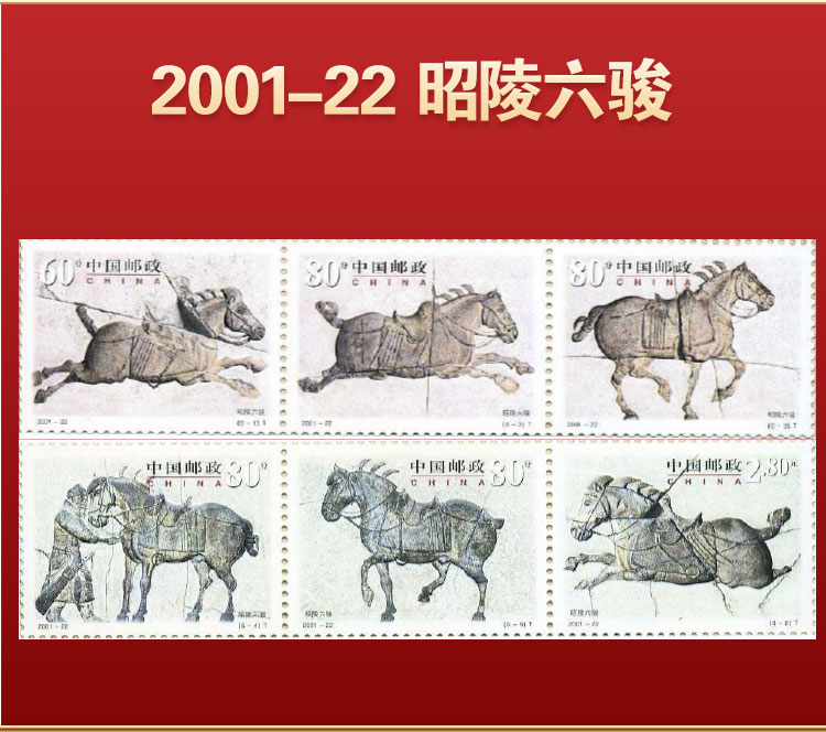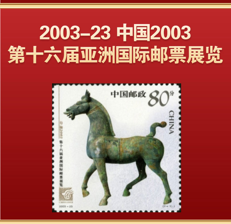 1-3轮生肖马邮票*4枚,奔马邮票*2枚,秦始皇陵铜车马邮票*2枚,中国旅游年邮票*1枚,浴马图邮票*3枚,神骏图邮票*2枚,虢国夫人游春图邮票*2枚,昭陵六骏邮票*6枚,中国 2003 第十六届亚洲国际邮展邮票*1枚,马踏飞燕邮票*1,