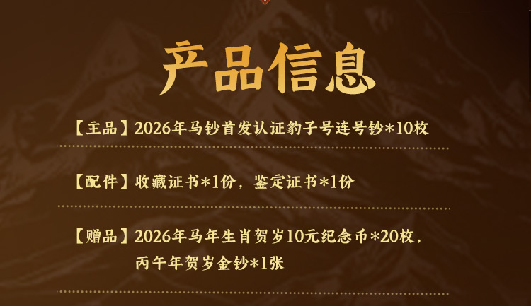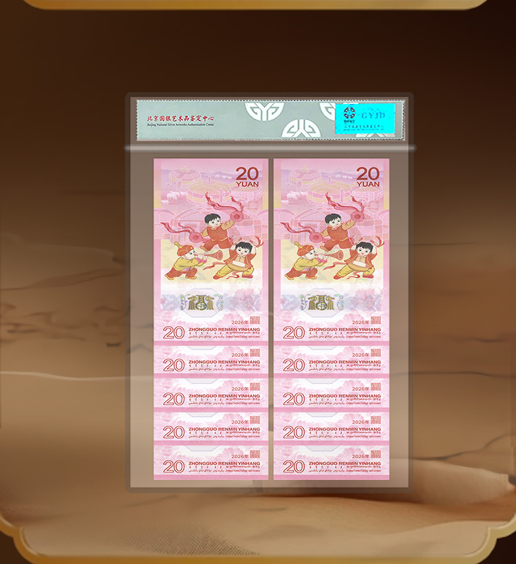 主品:2026年马钞首发认证豹子号连号钞*10枚,尾号从111-222-333-444-555-666-777-888-999-000,每枚面值20元,共计200元面值